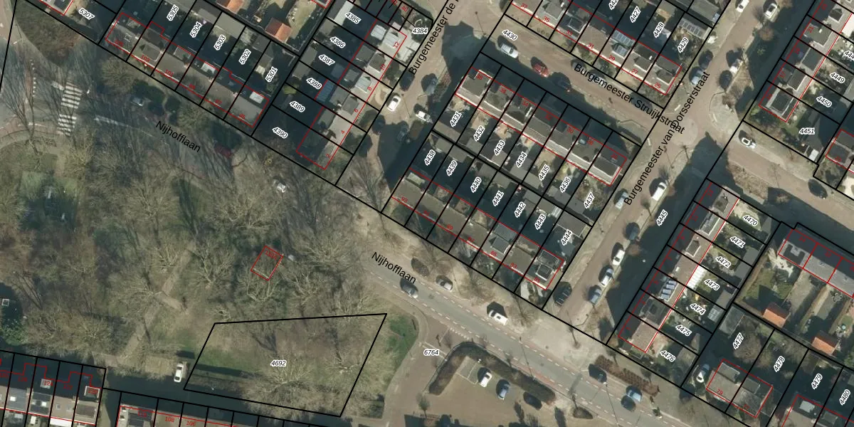 Nijhofflaan 91 is gelegen op kadastraal perceel DBD00A4439. Deze kadastrale aanduiding is uniek en wordt gebruikt door het Kadaster om eigendomsrechten en andere zakelijke rechten vast te leggen. Het perceel maakt onderdeel uit van de kadastrale gemeente Dubbeldam.