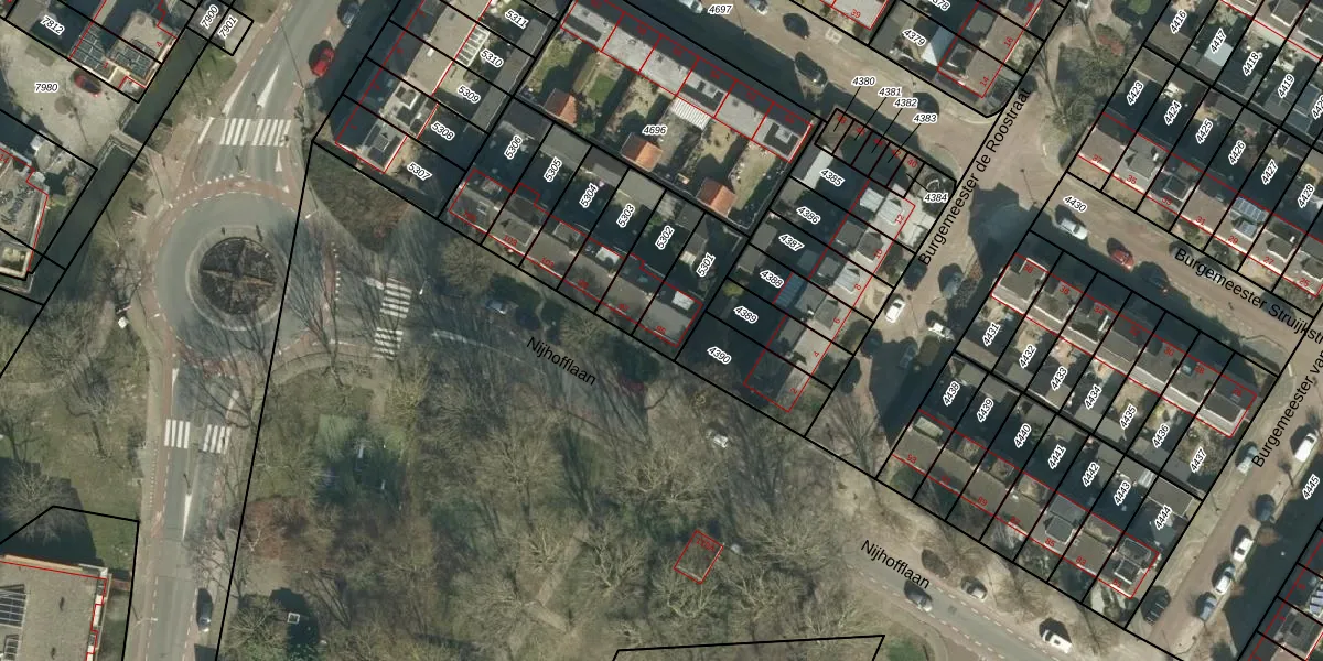 Nijhofflaan 95 is gelegen op kadastraal perceel DBD00A5301. Deze kadastrale aanduiding is uniek en wordt gebruikt door het Kadaster om eigendomsrechten en andere zakelijke rechten vast te leggen. Het perceel maakt onderdeel uit van de kadastrale gemeente Dubbeldam.