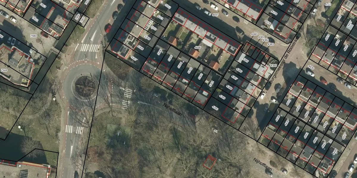 Gebruik de zoekbalk of klik op een perceel voor informatie over de adressen binnen dit perceel.
