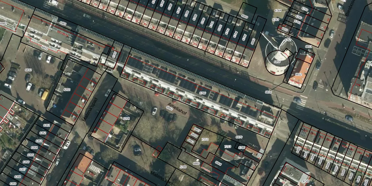 Het adres is gelegen op perceel 6766 in de sectie C en de kadastrale gemeente Dordrecht. De kadastrale aanduiding is aldus DDT00-C-6766. Het perceel is 1490 m² groot. Dat is kleiner dan de gemiddelde perceeloppervlakte in Dordrecht, dat op 2475,68 m² ligt. Het kleinste perceel in de kadastrale gemeente is 0 m² groot. De grootste perceeloppervlakte is 3,41 km². Op het perceel liggen in totaal 25 adressen. De huidige grenzen van het perceel zijn digitaal in de Basisregistratie Kadaster (BRK) geregistreerd op 15-01-2008.