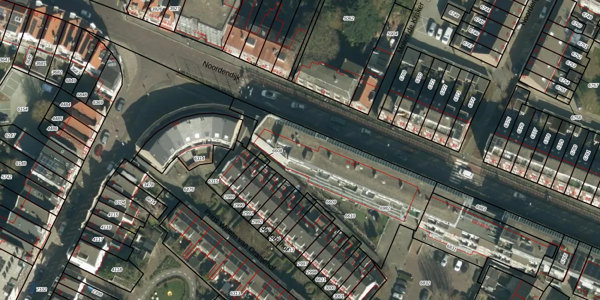 Het perceel waarop Noordendijk 41 staat heeft een oppervlakte van 1469 m². Dit is een zeer groot perceel. De perceeloppervlakte wordt geregistreerd door het Kadaster. Gedetailleerde informatie over de maten van dit perceel kunt u vinden in het rapport Kadastrale kaart met maatvoering van Noordendijk 41.