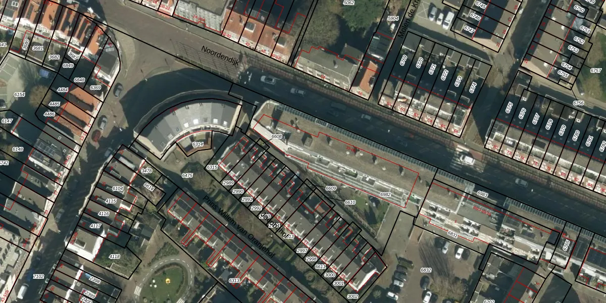 Het perceel waarop Noordendijk 51 staat heeft een oppervlakte van 1469 m². Dit is een zeer groot perceel. De perceeloppervlakte wordt geregistreerd door het Kadaster. Gedetailleerde informatie over de maten van dit perceel kunt u vinden in het rapport Kadastrale kaart met maatvoering van Noordendijk 51.