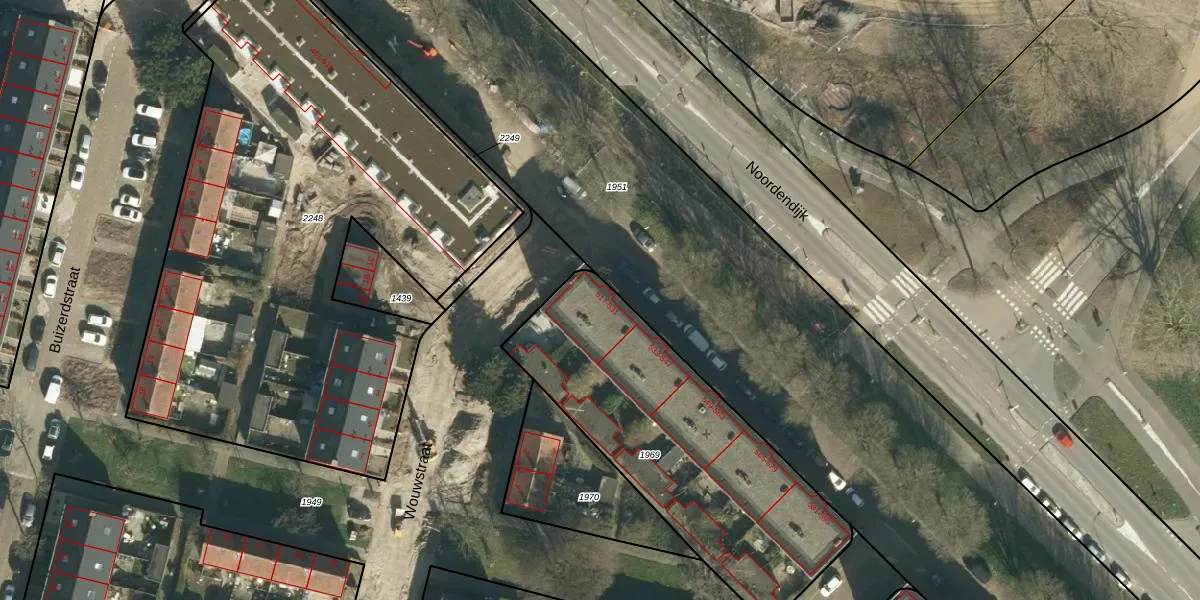 Het perceel waarop Noordendijk 519 staat heeft een oppervlakte van 1337 m². Dit is een zeer groot perceel. De perceeloppervlakte wordt geregistreerd door het Kadaster. Gedetailleerde informatie over de maten van dit perceel kunt u vinden in het rapport Kadastrale kaart met maatvoering van Noordendijk 519.