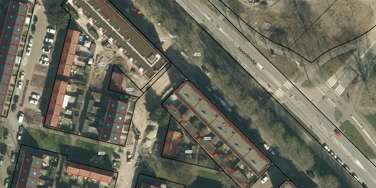 Het perceel waarop Noordendijk 527 staat heeft een oppervlakte van 1337 m². Dit is een zeer groot perceel. De perceeloppervlakte wordt geregistreerd door het Kadaster. Gedetailleerde informatie over de maten van dit perceel kunt u vinden in het rapport Kadastrale kaart met maatvoering van Noordendijk 527.