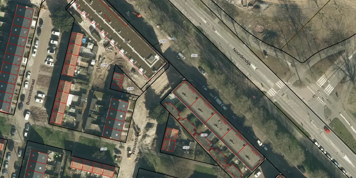 Het perceel waarop Noordendijk 529 staat heeft een oppervlakte van 1337 m². Dit is een zeer groot perceel. De perceeloppervlakte wordt geregistreerd door het Kadaster. Gedetailleerde informatie over de maten van dit perceel kunt u vinden in het rapport Kadastrale kaart met maatvoering van Noordendijk 529.