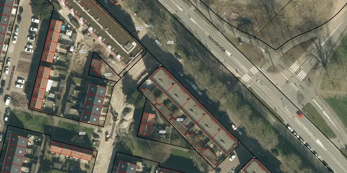 Het perceel waarop Noordendijk 537 staat heeft een oppervlakte van 1337 m². Dit is een zeer groot perceel. De perceeloppervlakte wordt geregistreerd door het Kadaster. Gedetailleerde informatie over de maten van dit perceel kunt u vinden in het rapport Kadastrale kaart met maatvoering van Noordendijk 537.
