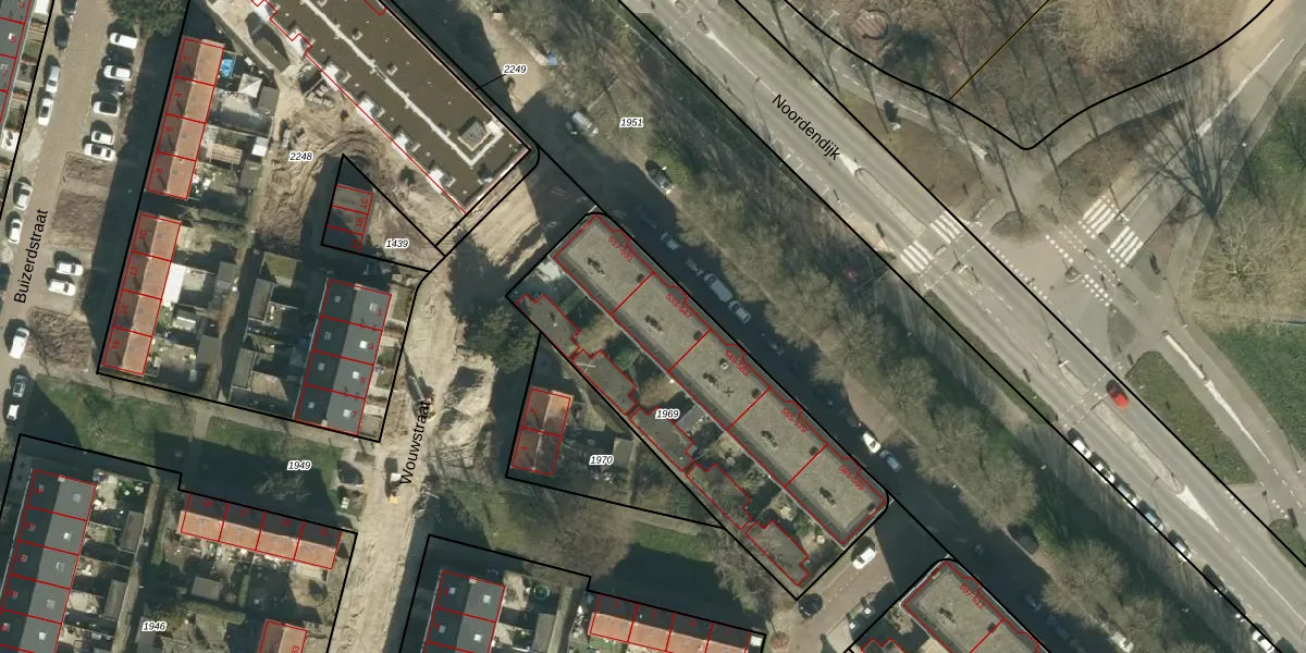 Het perceel waarop Noordendijk 547 staat heeft een oppervlakte van 1337 m². Dit is een zeer groot perceel. De perceeloppervlakte wordt geregistreerd door het Kadaster. Gedetailleerde informatie over de maten van dit perceel kunt u vinden in het rapport Kadastrale kaart met maatvoering van Noordendijk 547.