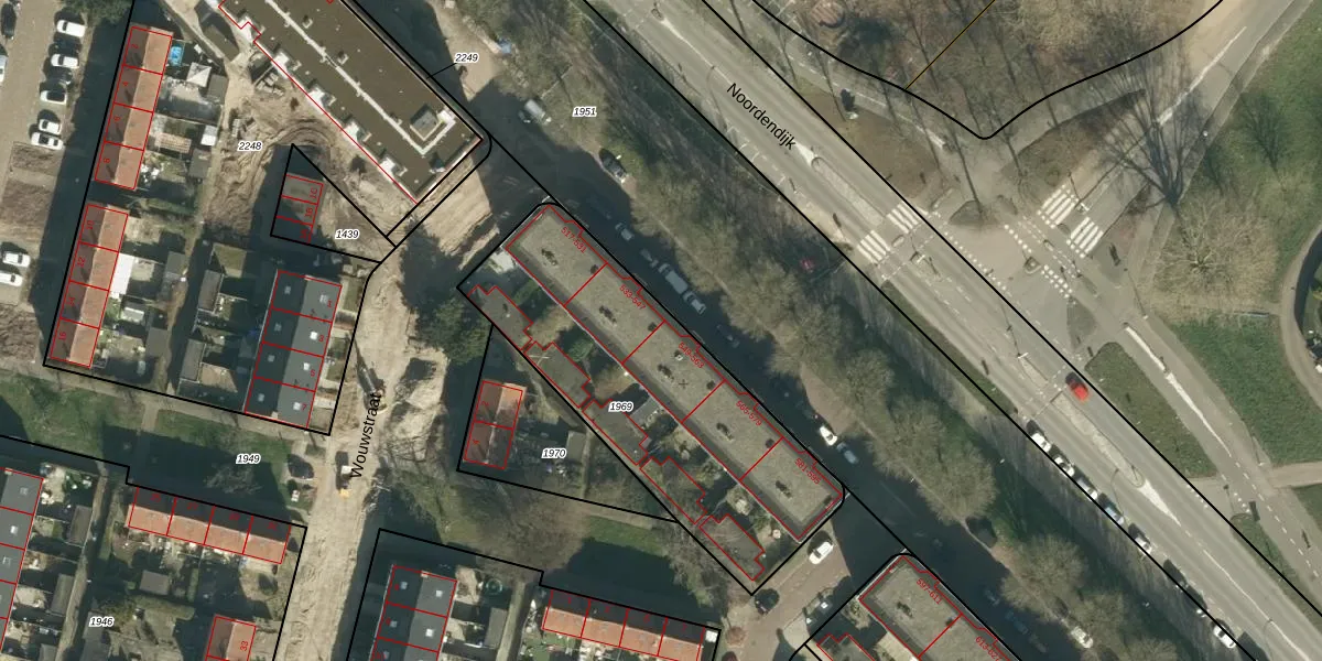 Het perceel waarop Noordendijk 549 staat heeft een oppervlakte van 1337 m². Dit is een zeer groot perceel. De perceeloppervlakte wordt geregistreerd door het Kadaster. Gedetailleerde informatie over de maten van dit perceel kunt u vinden in het rapport Kadastrale kaart met maatvoering van Noordendijk 549.