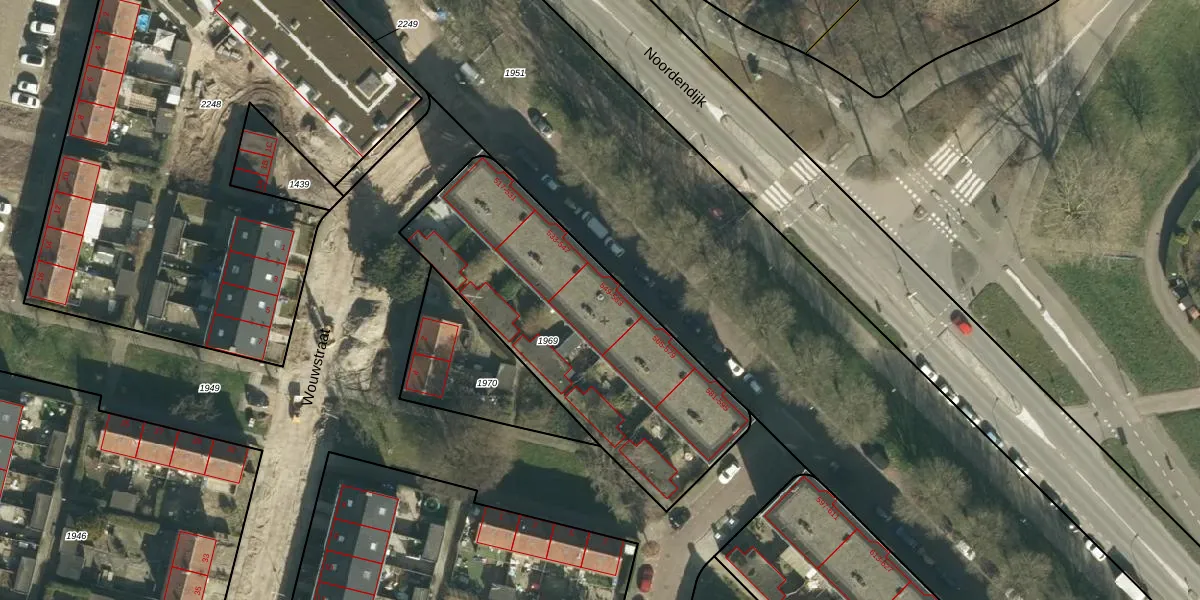 Het perceel waarop Noordendijk 555 staat heeft een oppervlakte van 1337 m². Dit is een zeer groot perceel. De perceeloppervlakte wordt geregistreerd door het Kadaster. Gedetailleerde informatie over de maten van dit perceel kunt u vinden in het rapport Kadastrale kaart met maatvoering van Noordendijk 555.