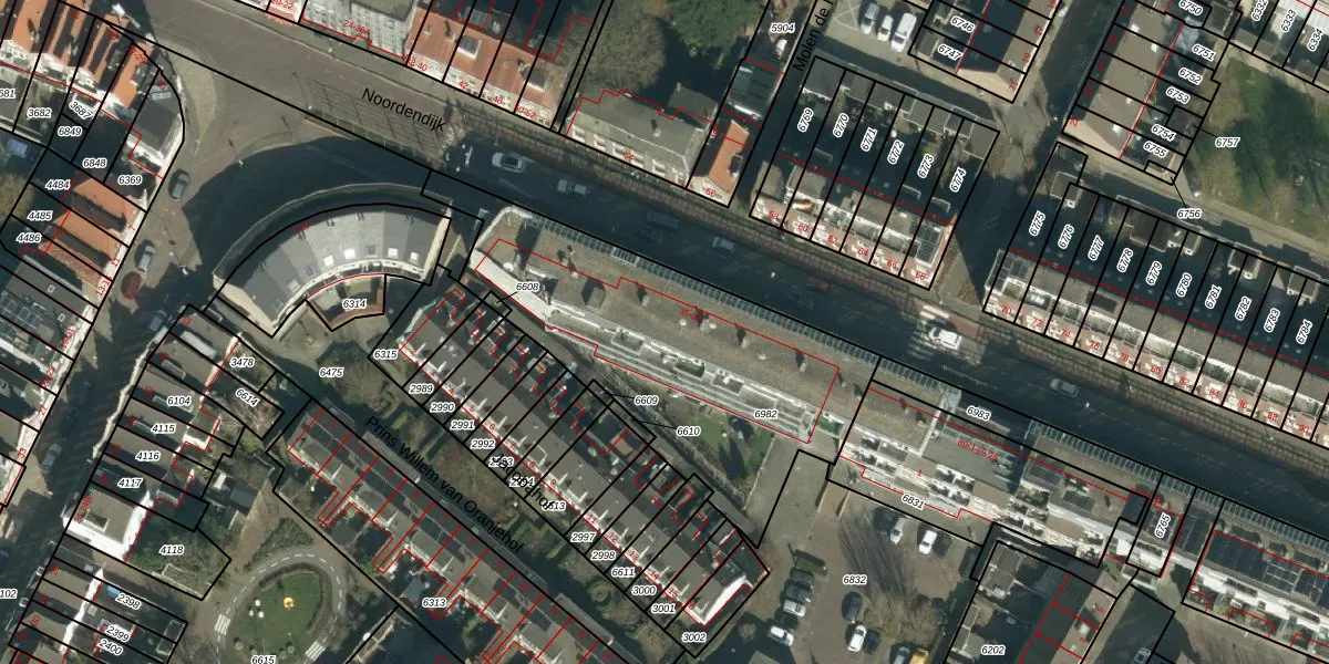 Het perceel waarop Noordendijk 85 staat heeft een oppervlakte van 1469 m². Dit is een zeer groot perceel. De perceeloppervlakte wordt geregistreerd door het Kadaster. Gedetailleerde informatie over de maten van dit perceel kunt u vinden in het rapport Kadastrale kaart met maatvoering van Noordendijk 85.