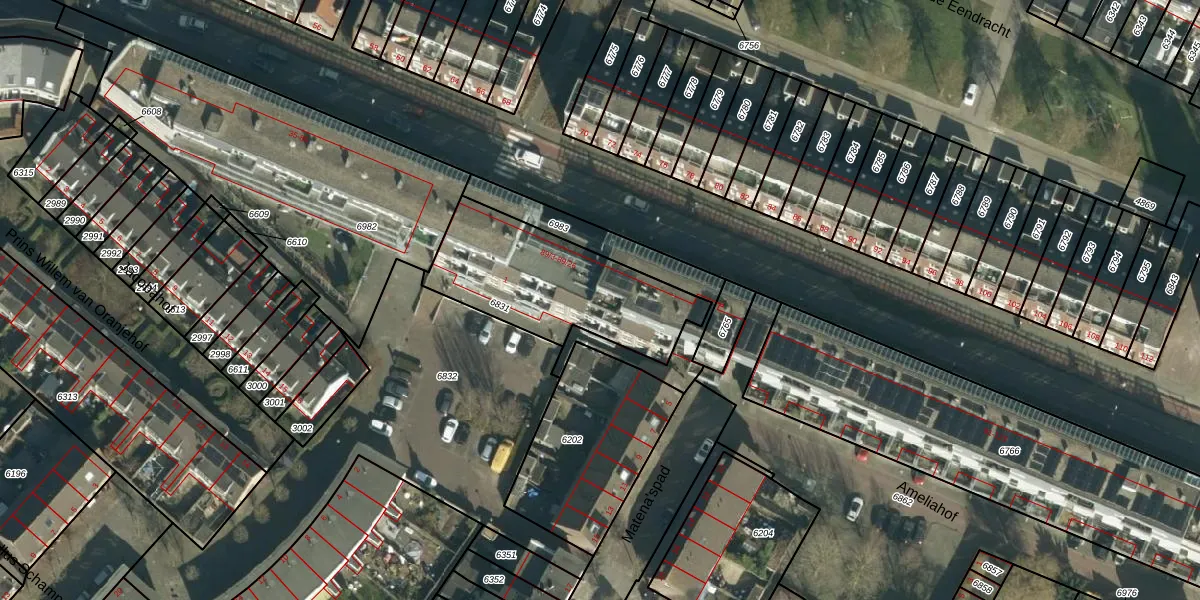Het perceel waarop het adres ligt is DDT00-C-6831. De afkorting 'DDT00' staat voor kadastrale gemeente Dordrecht. De gemiddelde perceelgrootte in Dordrecht is 2475,62 m². Dit perceel is kleiner: de perceeloppervlakte bedraagt 646 m². De grootste perceeloppervlakte in de kadastrale gemeente is 3,41 km². De kleinste oppervlakte bedraagt 0 m². Er zijn 22 adressen aanwezig op het perceel. De huidige grenzen van het perceel zijn digitaal in de Basisregistratie Kadaster (BRK) geregistreerd op 15-01-2008.