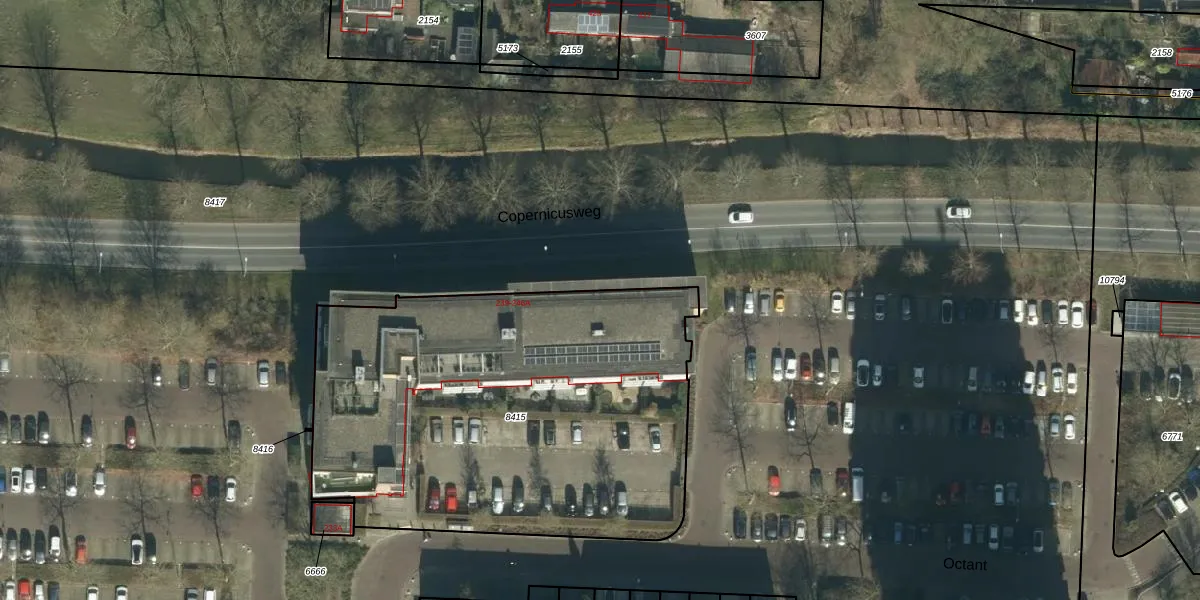 Het perceel waarop Octant 239-D staat heeft een oppervlakte van 2427 m². Dit is een zeer groot perceel. De perceeloppervlakte wordt geregistreerd door het Kadaster. Gedetailleerde informatie over de maten van dit perceel kunt u vinden in het rapport Kadastrale kaart met maatvoering van Octant 239-D.