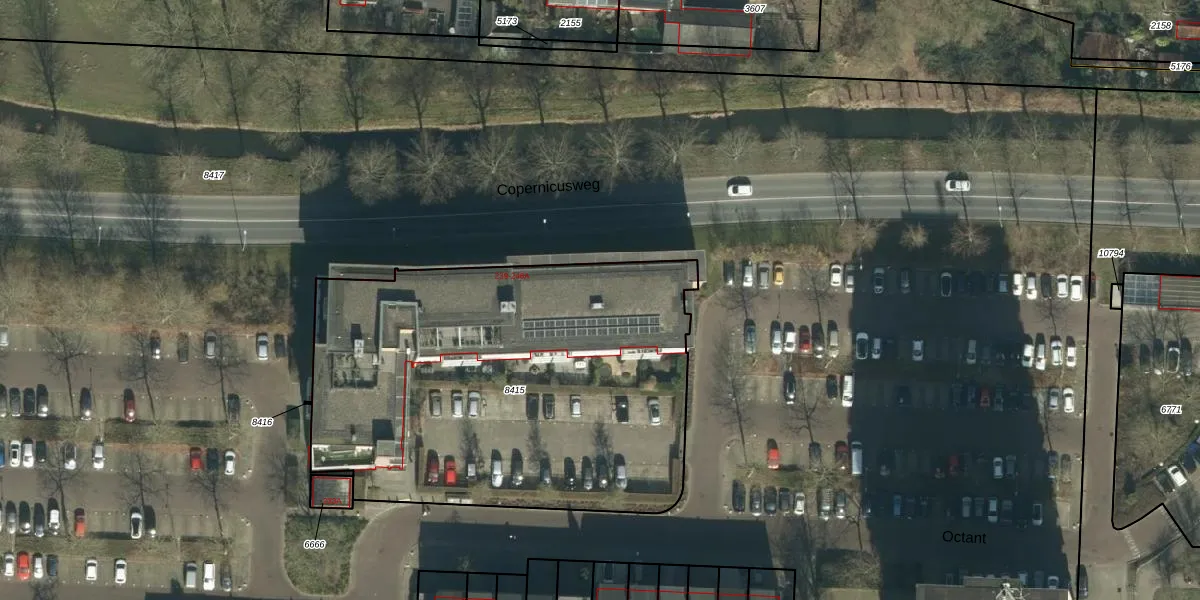 Het perceel waarop Octant 245-E staat heeft een oppervlakte van 2427 m². Dit is een zeer groot perceel. De perceeloppervlakte wordt geregistreerd door het Kadaster. Gedetailleerde informatie over de maten van dit perceel kunt u vinden in het rapport Kadastrale kaart met maatvoering van Octant 245-E.