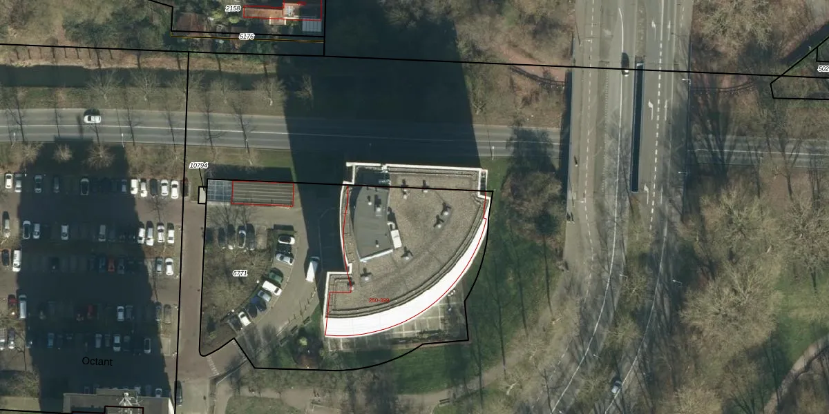 Het perceel waarop Octant 280 staat heeft een oppervlakte van 2780 m². Dit is een zeer groot perceel. De perceeloppervlakte wordt geregistreerd door het Kadaster. Gedetailleerde informatie over de maten van dit perceel kunt u vinden in het rapport Kadastrale kaart met maatvoering van Octant 280.