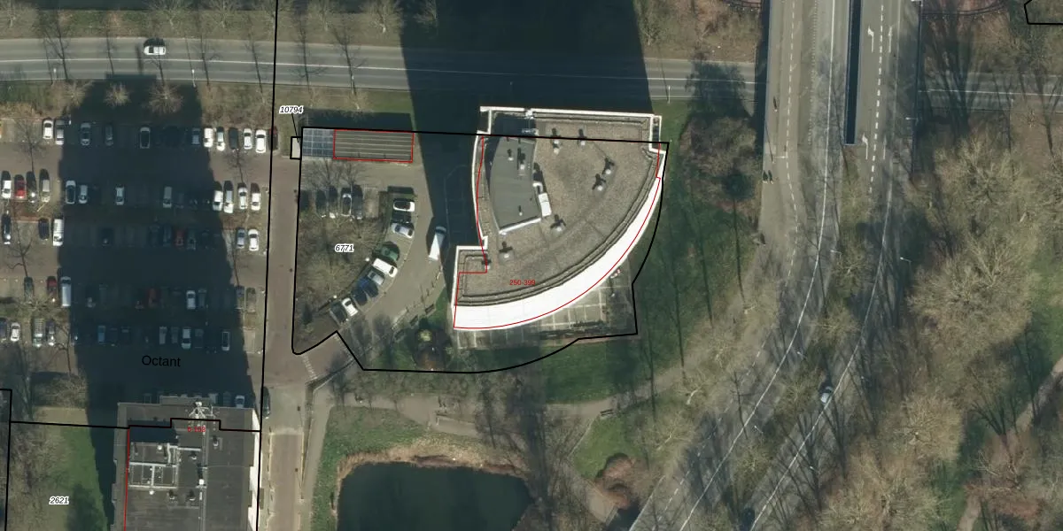 Het perceel waarop Octant 380 staat heeft een oppervlakte van 2780 m². Dit is een zeer groot perceel. De perceeloppervlakte wordt geregistreerd door het Kadaster. Gedetailleerde informatie over de maten van dit perceel kunt u vinden in het rapport Kadastrale kaart met maatvoering van Octant 380.
