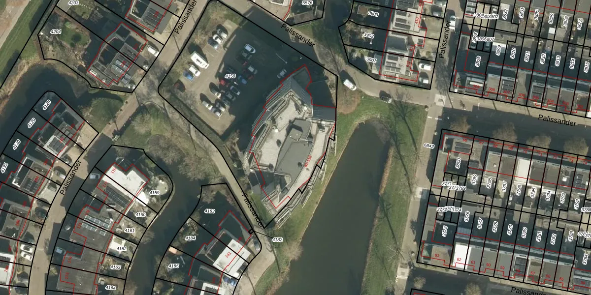 Het perceel waarop Palissander 116 staat heeft een oppervlakte van 2580 m². Dit is een zeer groot perceel. De perceeloppervlakte wordt geregistreerd door het Kadaster. Gedetailleerde informatie over de maten van dit perceel kunt u vinden in het rapport Kadastrale kaart met maatvoering van Palissander 116.