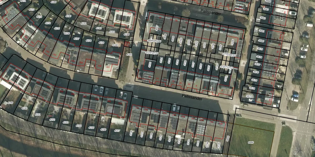 Het perceel waarop Palissander 14 staat heeft een oppervlakte van 129 m². Dit is een middelgroot perceel. De perceeloppervlakte wordt geregistreerd door het Kadaster. Gedetailleerde informatie over de maten van dit perceel kunt u vinden in het rapport Kadastrale kaart met maatvoering van Palissander 14.
