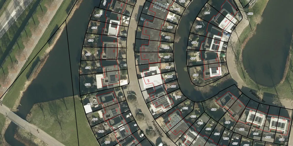 Het perceel waarop Palissander 170 staat heeft een oppervlakte van 201 m². Dit is een middelgroot perceel. De perceeloppervlakte wordt geregistreerd door het Kadaster. Gedetailleerde informatie over de maten van dit perceel kunt u vinden in het rapport Kadastrale kaart met maatvoering van Palissander 170.