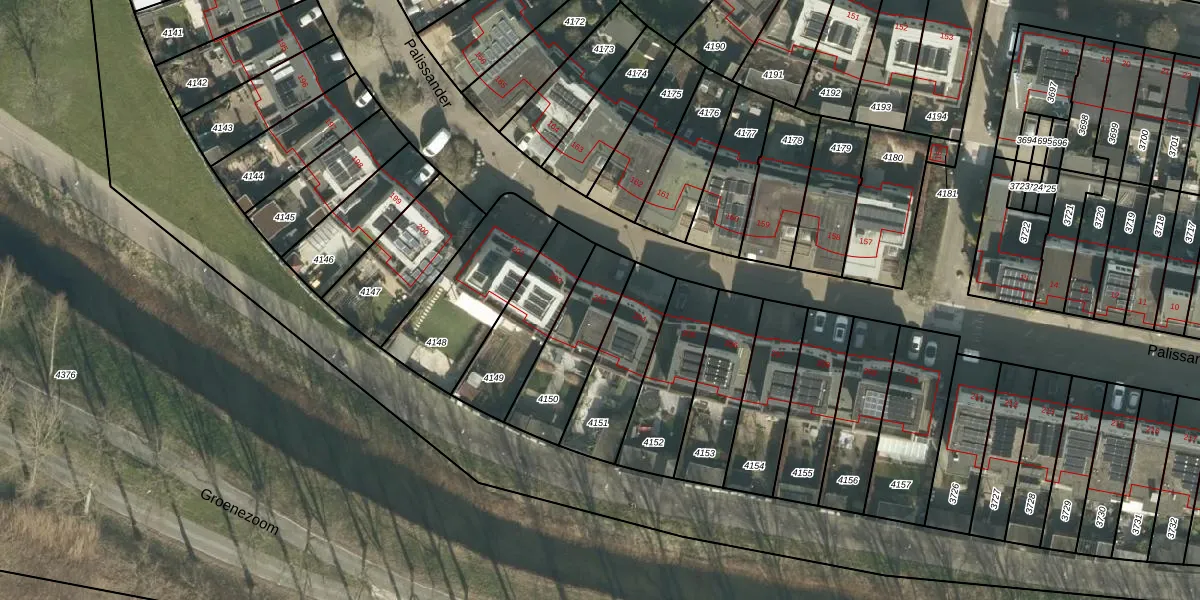 Gebruik de zoekbalk of klik op een perceel voor informatie over de adressen binnen dit perceel.