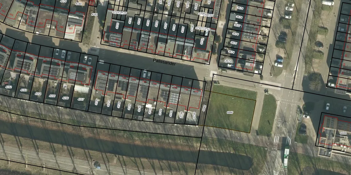 Het perceel waarop Palissander 218 staat heeft een oppervlakte van 163 m². Dit is een middelgroot perceel. De perceeloppervlakte wordt geregistreerd door het Kadaster. Gedetailleerde informatie over de maten van dit perceel kunt u vinden in het rapport Kadastrale kaart met maatvoering van Palissander 218.