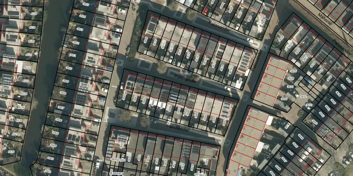 Het perceel waarop Palissander 338 staat heeft een oppervlakte van 112 m². Dit is een middelgroot perceel. De perceeloppervlakte wordt geregistreerd door het Kadaster. Gedetailleerde informatie over de maten van dit perceel kunt u vinden in het rapport Kadastrale kaart met maatvoering van Palissander 338.