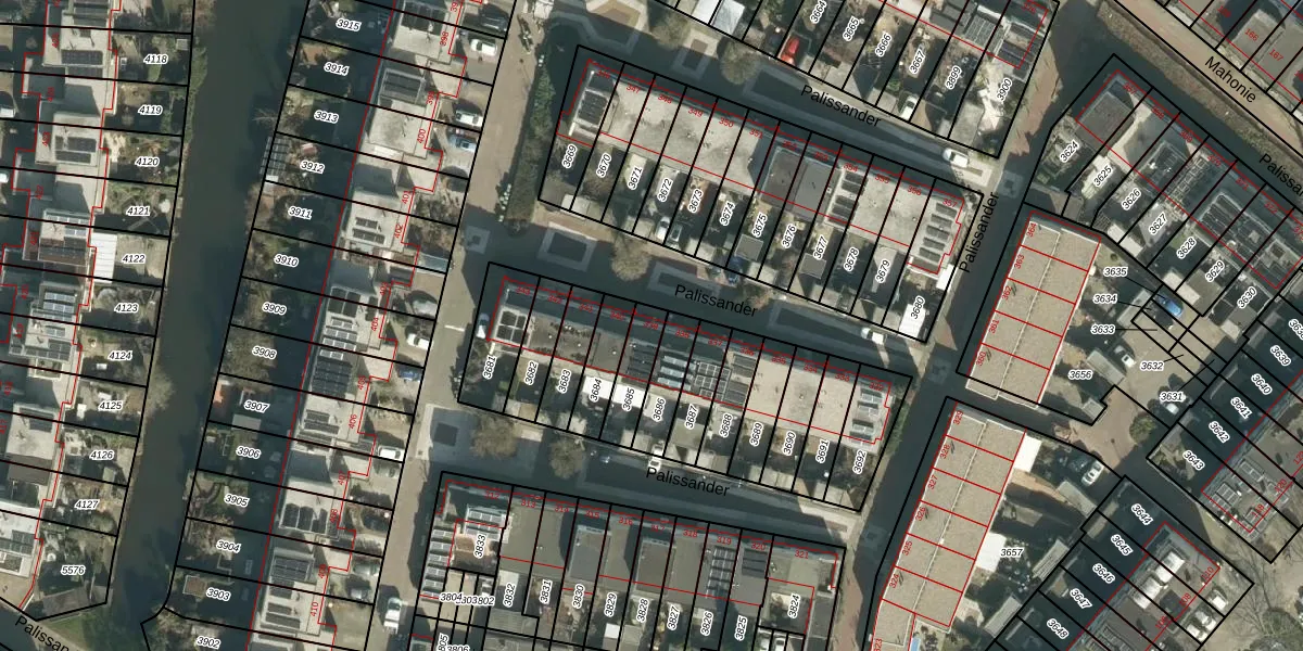 Het perceel waarop Palissander 339 staat heeft een oppervlakte van 112 m². Dit is een middelgroot perceel. De perceeloppervlakte wordt geregistreerd door het Kadaster. Gedetailleerde informatie over de maten van dit perceel kunt u vinden in het rapport Kadastrale kaart met maatvoering van Palissander 339.