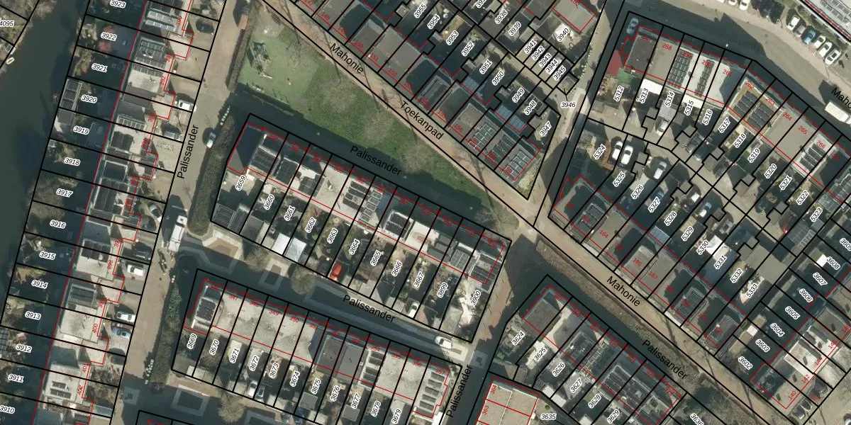 Het perceel waarop Palissander 379 staat heeft een oppervlakte van 153 m². Dit is een middelgroot perceel. De perceeloppervlakte wordt geregistreerd door het Kadaster. Gedetailleerde informatie over de maten van dit perceel kunt u vinden in het rapport Kadastrale kaart met maatvoering van Palissander 379.