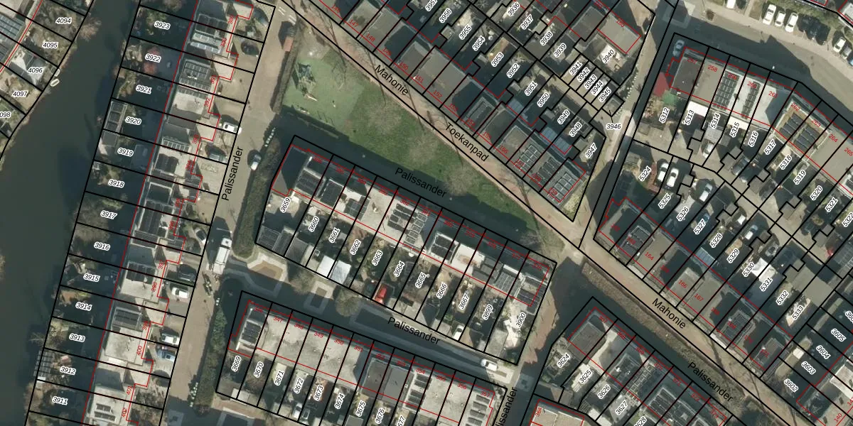Het perceel waarop Palissander 381 staat heeft een oppervlakte van 153 m². Dit is een middelgroot perceel. De perceeloppervlakte wordt geregistreerd door het Kadaster. Gedetailleerde informatie over de maten van dit perceel kunt u vinden in het rapport Kadastrale kaart met maatvoering van Palissander 381.
