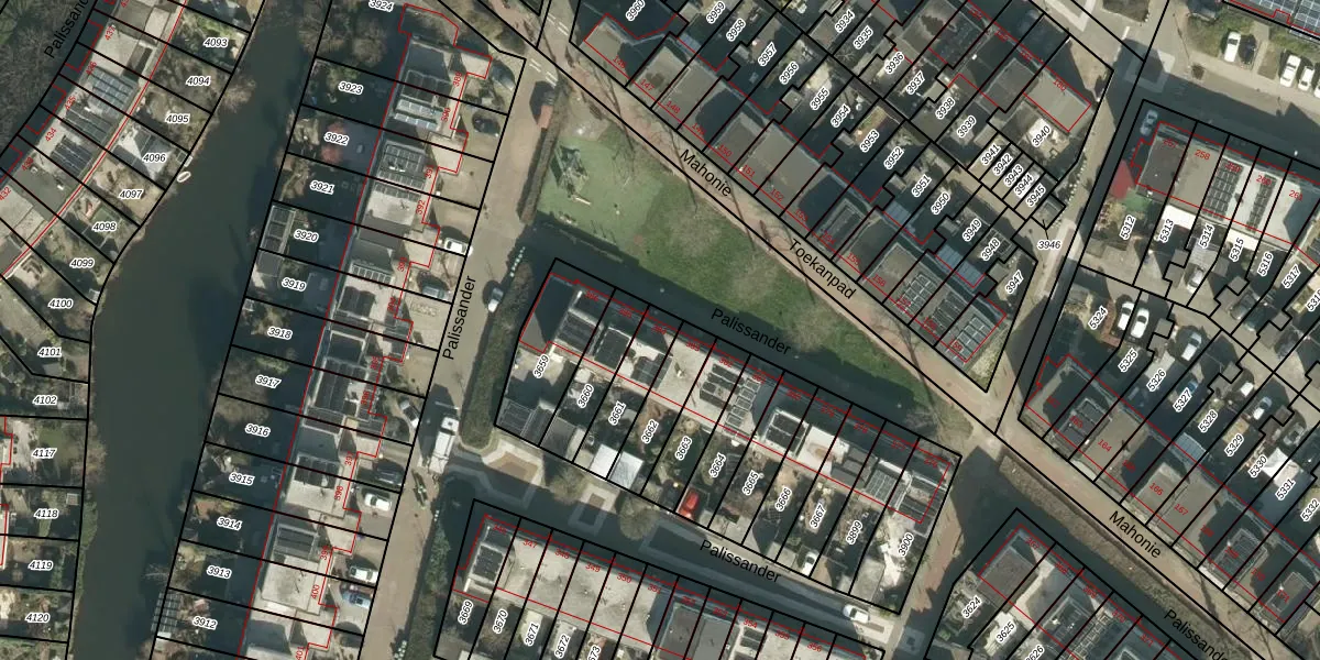 Het perceel waarop Palissander 384 staat heeft een oppervlakte van 153 m². Dit is een middelgroot perceel. De perceeloppervlakte wordt geregistreerd door het Kadaster. Gedetailleerde informatie over de maten van dit perceel kunt u vinden in het rapport Kadastrale kaart met maatvoering van Palissander 384.