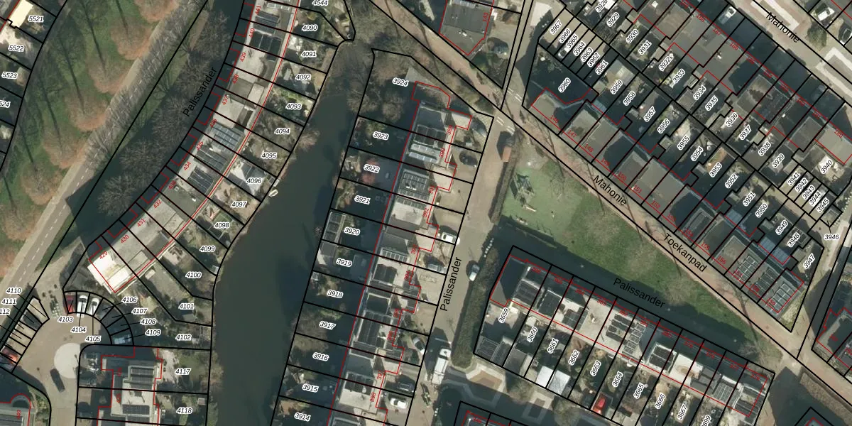 Het perceel waarop Palissander 392 staat heeft een oppervlakte van 232 m². Dit is een middelgroot perceel. De perceeloppervlakte wordt geregistreerd door het Kadaster. Gedetailleerde informatie over de maten van dit perceel kunt u vinden in het rapport Kadastrale kaart met maatvoering van Palissander 392.