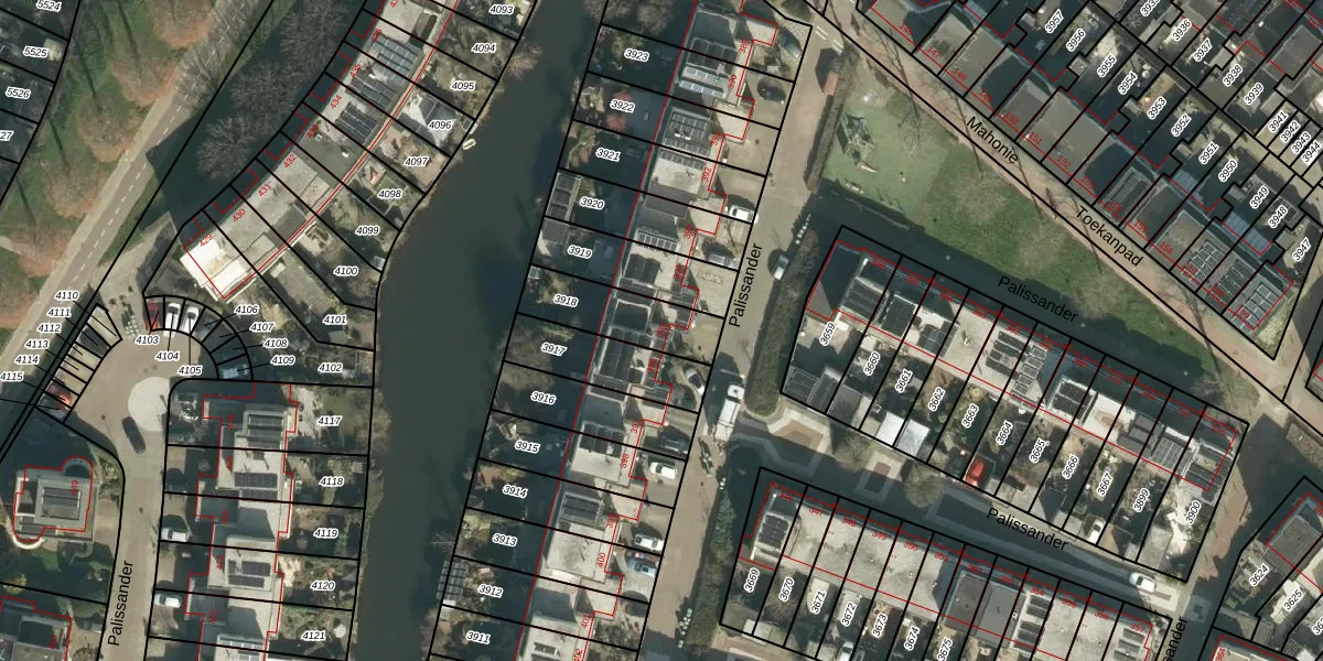 Het perceel waarop Palissander 395 staat heeft een oppervlakte van 232 m². Dit is een middelgroot perceel. De perceeloppervlakte wordt geregistreerd door het Kadaster. Gedetailleerde informatie over de maten van dit perceel kunt u vinden in het rapport Kadastrale kaart met maatvoering van Palissander 395.