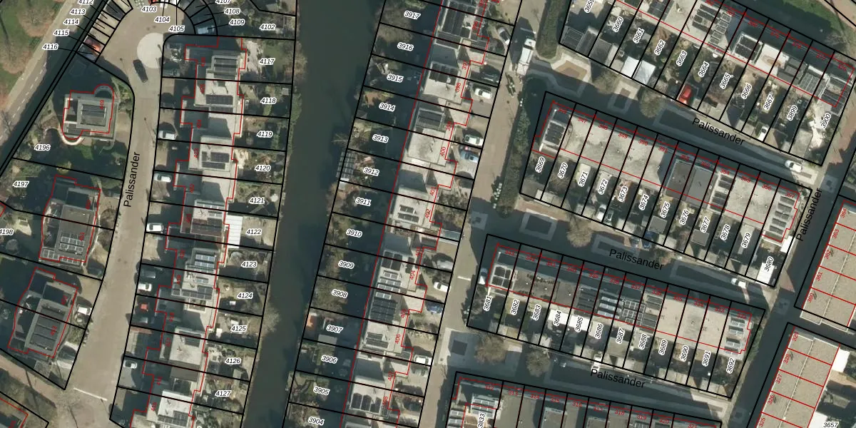 Het perceel waarop Palissander 402 staat heeft een oppervlakte van 232 m². Dit is een middelgroot perceel. De perceeloppervlakte wordt geregistreerd door het Kadaster. Gedetailleerde informatie over de maten van dit perceel kunt u vinden in het rapport Kadastrale kaart met maatvoering van Palissander 402.
