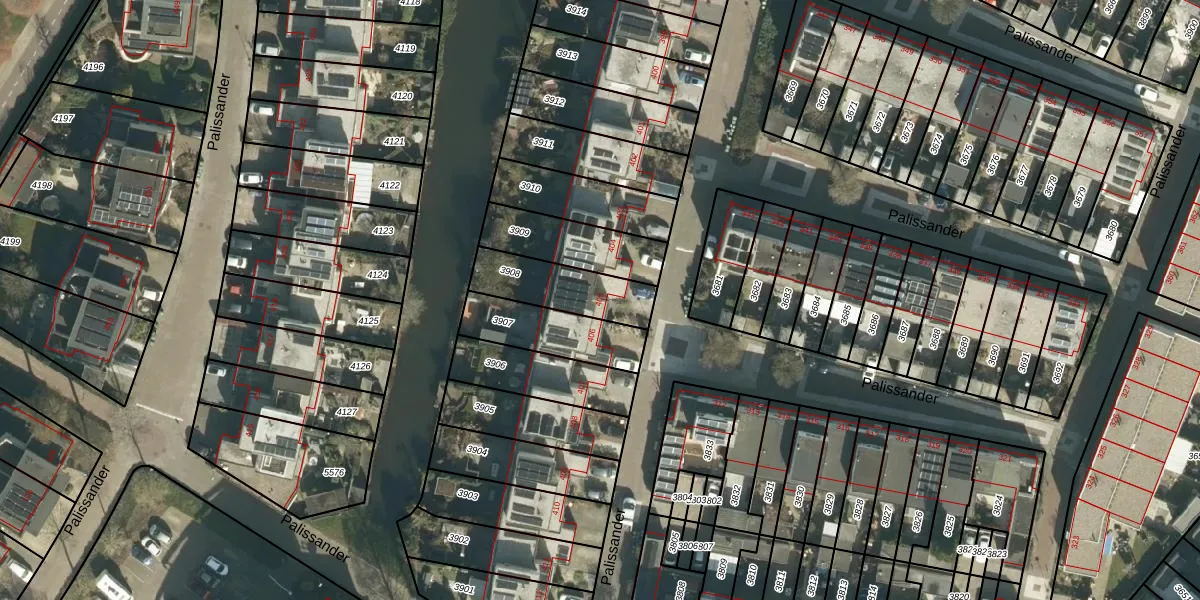 Het perceel waarop Palissander 405 staat heeft een oppervlakte van 232 m². Dit is een middelgroot perceel. De perceeloppervlakte wordt geregistreerd door het Kadaster. Gedetailleerde informatie over de maten van dit perceel kunt u vinden in het rapport Kadastrale kaart met maatvoering van Palissander 405.