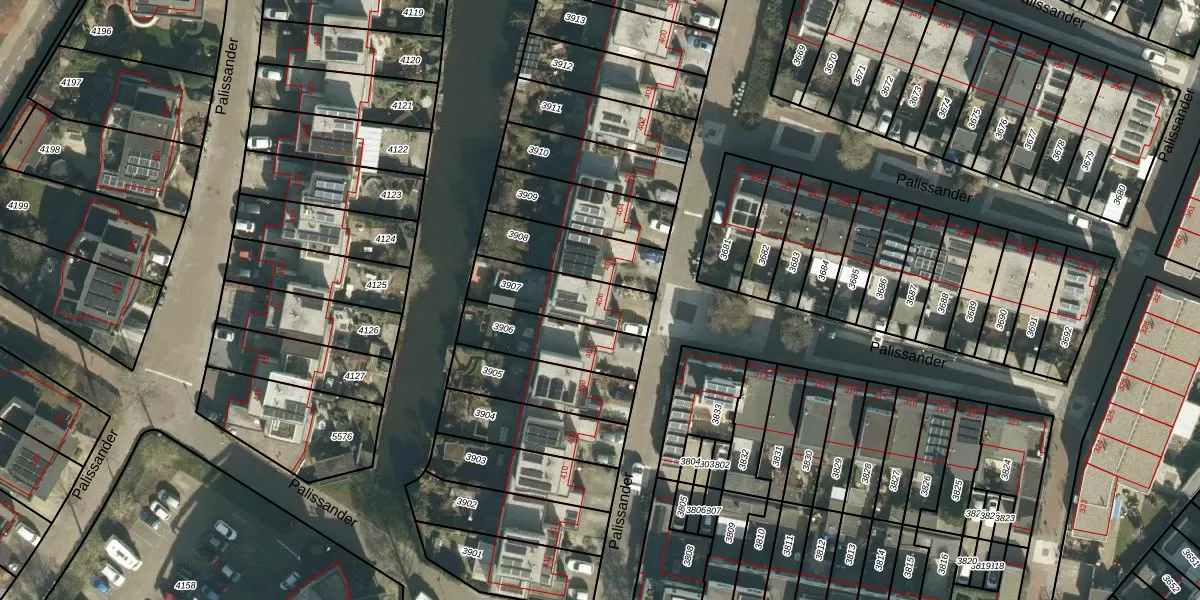 Het perceel waarop Palissander 406 staat heeft een oppervlakte van 232 m². Dit is een middelgroot perceel. De perceeloppervlakte wordt geregistreerd door het Kadaster. Gedetailleerde informatie over de maten van dit perceel kunt u vinden in het rapport Kadastrale kaart met maatvoering van Palissander 406.