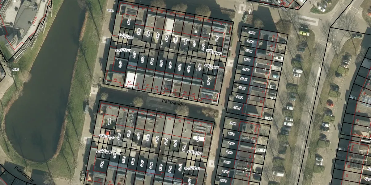 Het perceel waarop Palissander 56 staat heeft een oppervlakte van 111 m². Dit is een middelgroot perceel. De perceeloppervlakte wordt geregistreerd door het Kadaster. Gedetailleerde informatie over de maten van dit perceel kunt u vinden in het rapport Kadastrale kaart met maatvoering van Palissander 56.