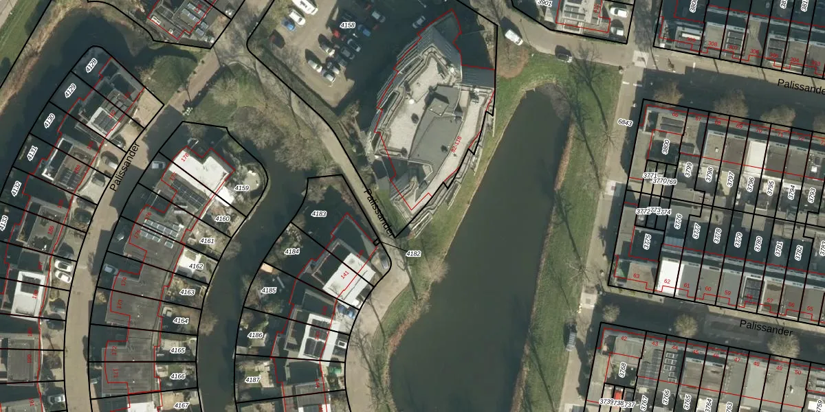 Het perceel waarop Palissander 82 staat heeft een oppervlakte van 2580 m². Dit is een zeer groot perceel. De perceeloppervlakte wordt geregistreerd door het Kadaster. Gedetailleerde informatie over de maten van dit perceel kunt u vinden in het rapport Kadastrale kaart met maatvoering van Palissander 82.
