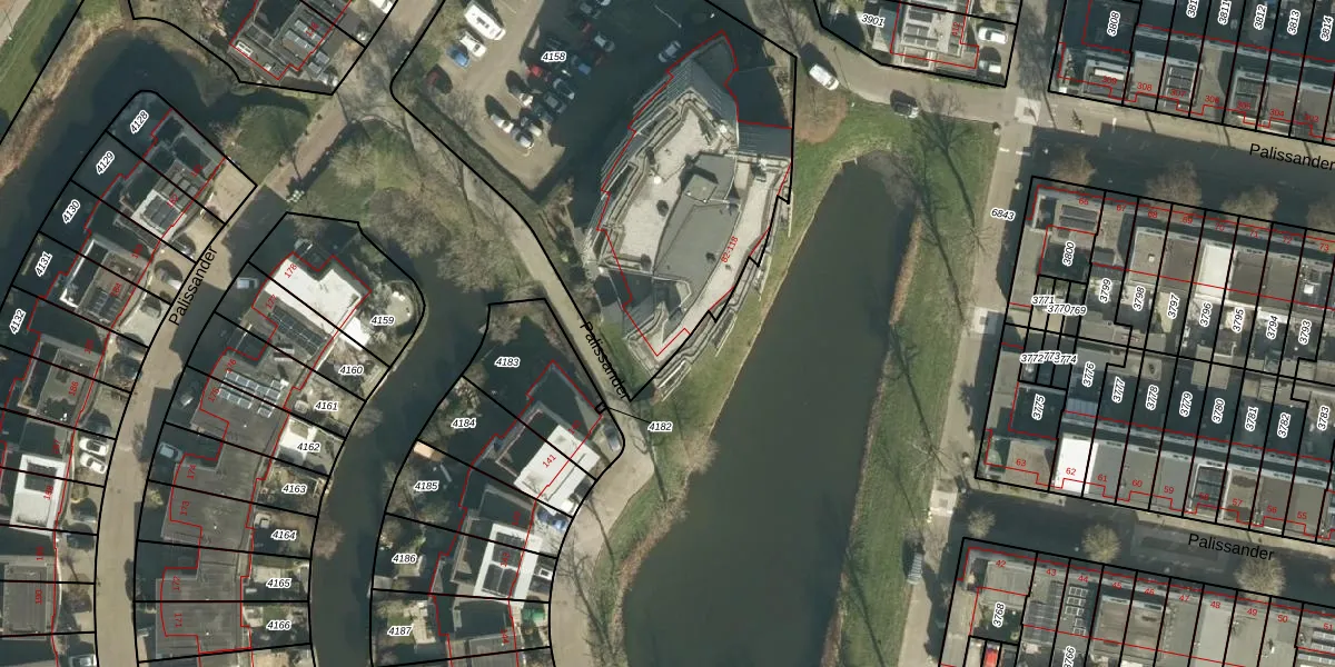 Het perceel waarop Palissander 83 staat heeft een oppervlakte van 2580 m². Dit is een zeer groot perceel. De perceeloppervlakte wordt geregistreerd door het Kadaster. Gedetailleerde informatie over de maten van dit perceel kunt u vinden in het rapport Kadastrale kaart met maatvoering van Palissander 83.