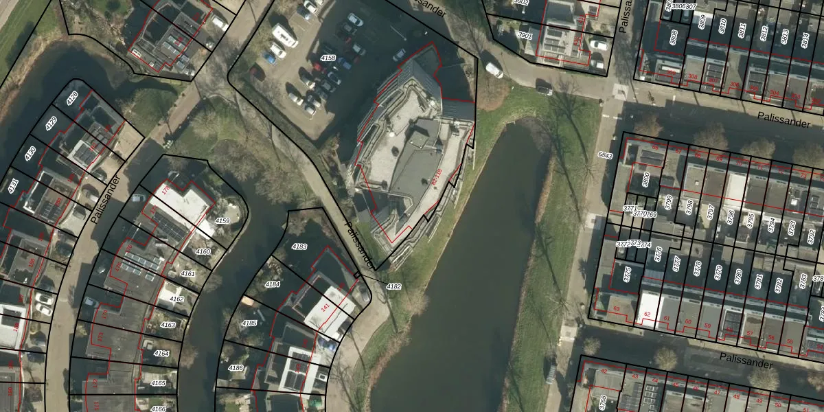 Het perceel waarop Palissander 85 staat heeft een oppervlakte van 2580 m². Dit is een zeer groot perceel. De perceeloppervlakte wordt geregistreerd door het Kadaster. Gedetailleerde informatie over de maten van dit perceel kunt u vinden in het rapport Kadastrale kaart met maatvoering van Palissander 85.
