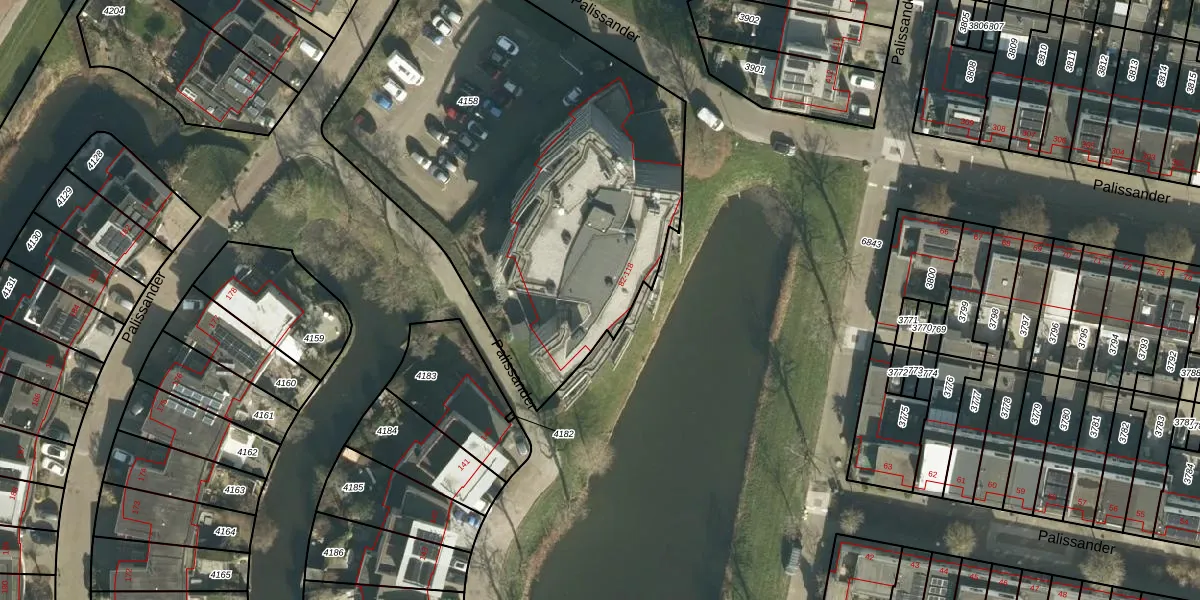 Het perceel waarop Palissander 86 staat heeft een oppervlakte van 2580 m². Dit is een zeer groot perceel. De perceeloppervlakte wordt geregistreerd door het Kadaster. Gedetailleerde informatie over de maten van dit perceel kunt u vinden in het rapport Kadastrale kaart met maatvoering van Palissander 86.
