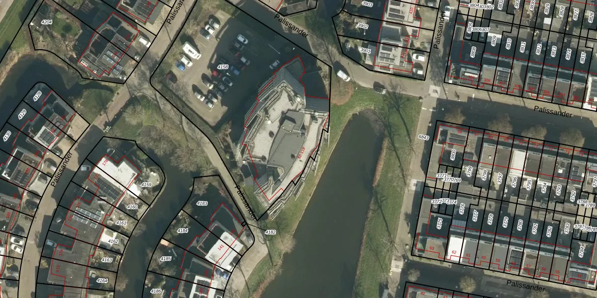 Het perceel waarop Palissander 88 staat heeft een oppervlakte van 2580 m². Dit is een zeer groot perceel. De perceeloppervlakte wordt geregistreerd door het Kadaster. Gedetailleerde informatie over de maten van dit perceel kunt u vinden in het rapport Kadastrale kaart met maatvoering van Palissander 88.