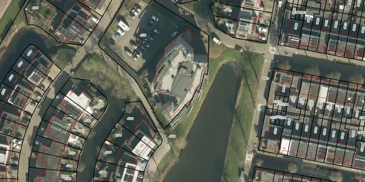 Het perceel waarop Palissander 98 staat heeft een oppervlakte van 2580 m². Dit is een zeer groot perceel. De perceeloppervlakte wordt geregistreerd door het Kadaster. Gedetailleerde informatie over de maten van dit perceel kunt u vinden in het rapport Kadastrale kaart met maatvoering van Palissander 98.