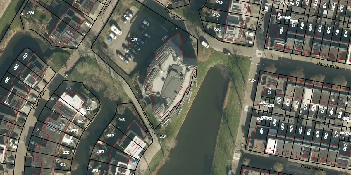 Het perceel waarop Palissander 99 staat heeft een oppervlakte van 2580 m². Dit is een zeer groot perceel. De perceeloppervlakte wordt geregistreerd door het Kadaster. Gedetailleerde informatie over de maten van dit perceel kunt u vinden in het rapport Kadastrale kaart met maatvoering van Palissander 99.