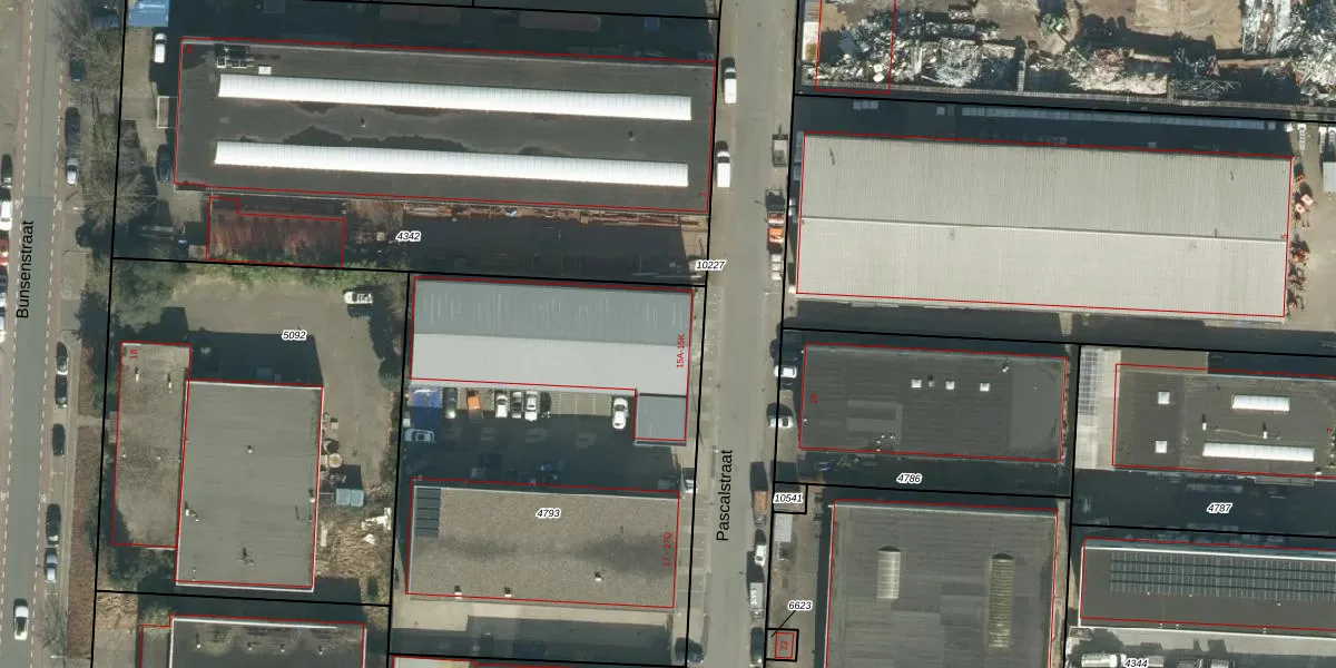 Het perceel waarop Pascalstraat 15-D staat heeft een oppervlakte van 2545 m². Dit is een zeer groot perceel. De perceeloppervlakte wordt geregistreerd door het Kadaster. Gedetailleerde informatie over de maten van dit perceel kunt u vinden in het rapport Kadastrale kaart met maatvoering van Pascalstraat 15-D.