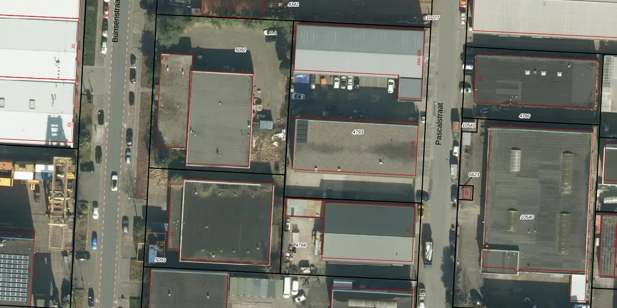 Het perceel waarop Pascalstraat 17-J staat heeft een oppervlakte van 2545 m². Dit is een zeer groot perceel. De perceeloppervlakte wordt geregistreerd door het Kadaster. Gedetailleerde informatie over de maten van dit perceel kunt u vinden in het rapport Kadastrale kaart met maatvoering van Pascalstraat 17-J.