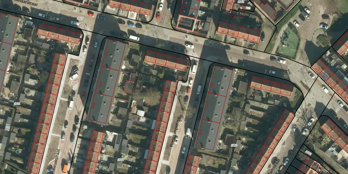 Roerdompstraat 1 is gelegen op kadastraal perceel DDT00B1633. Deze kadastrale aanduiding is uniek en wordt gebruikt door het Kadaster om eigendomsrechten en andere zakelijke rechten vast te leggen. Het perceel maakt onderdeel uit van de kadastrale gemeente Dordrecht.