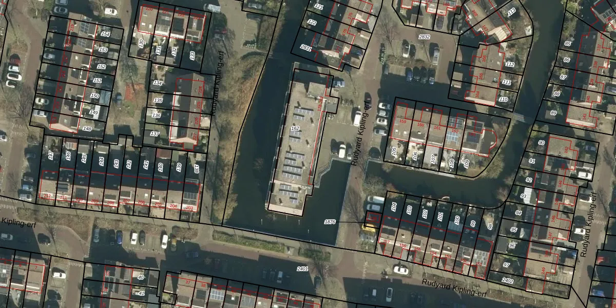 Rudyard Kipling-erf 187 is gelegen op kadastraal perceel DDT00Y162. Deze kadastrale aanduiding is uniek en wordt gebruikt door het Kadaster om eigendomsrechten en andere zakelijke rechten vast te leggen. Het perceel maakt onderdeel uit van de kadastrale gemeente Dordrecht.