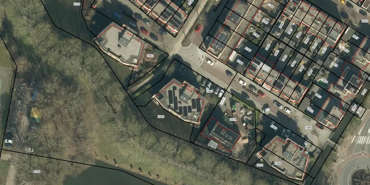 Het perceel waarop Rusthout 30 staat heeft een oppervlakte van 827 m². Dit is een groot perceel. De perceeloppervlakte wordt geregistreerd door het Kadaster. Gedetailleerde informatie over de maten van dit perceel kunt u vinden in het rapport Kadastrale kaart met maatvoering van Rusthout 30.
