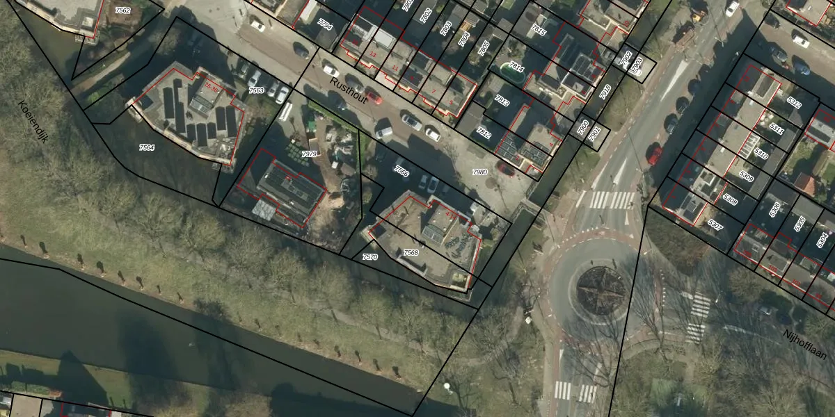 Het perceel waarop Rusthout 6 staat heeft een oppervlakte van 548 m². Dit is een groot perceel. De perceeloppervlakte wordt geregistreerd door het Kadaster. Gedetailleerde informatie over de maten van dit perceel kunt u vinden in het rapport Kadastrale kaart met maatvoering van Rusthout 6.