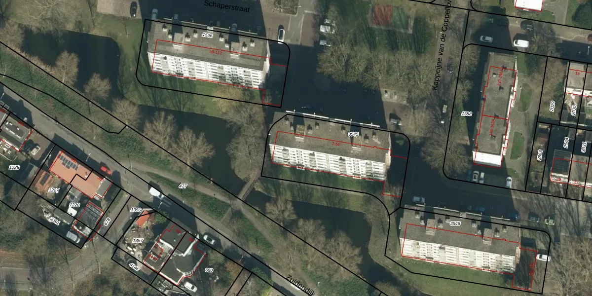 Het perceel waarop Schaperstraat 56 staat heeft een oppervlakte van 1063 m². Dit is een zeer groot perceel. De perceeloppervlakte wordt geregistreerd door het Kadaster. Gedetailleerde informatie over de maten van dit perceel kunt u vinden in het rapport Kadastrale kaart met maatvoering van Schaperstraat 56.