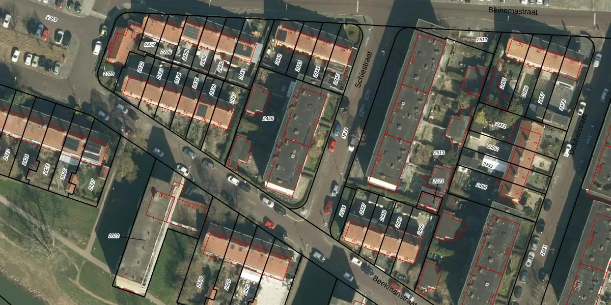 Het perceel waarop Schiestraat 13 staat heeft een oppervlakte van 1115 m². Dit is een zeer groot perceel. De perceeloppervlakte wordt geregistreerd door het Kadaster. Gedetailleerde informatie over de maten van dit perceel kunt u vinden in het rapport Kadastrale kaart met maatvoering van Schiestraat 13.